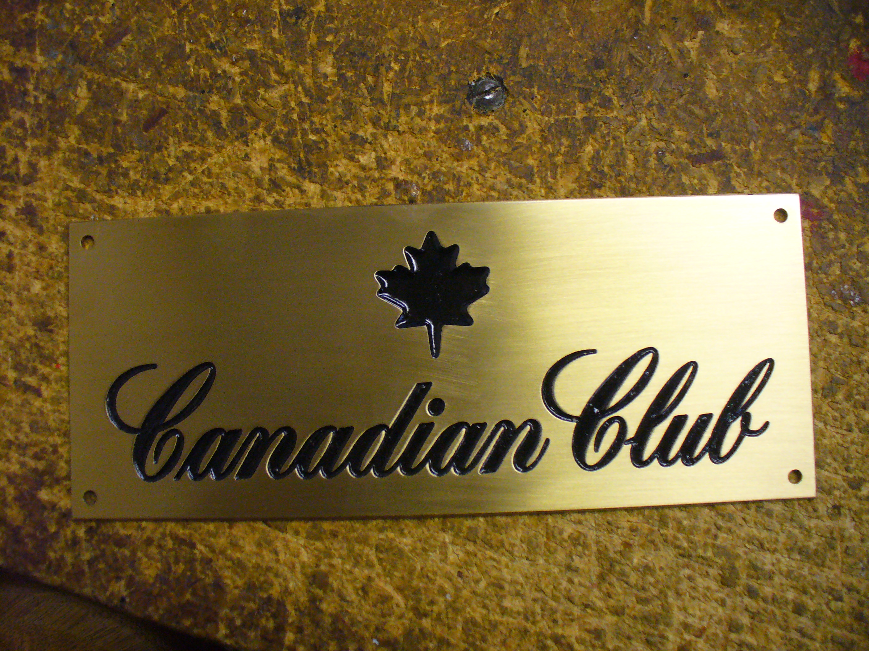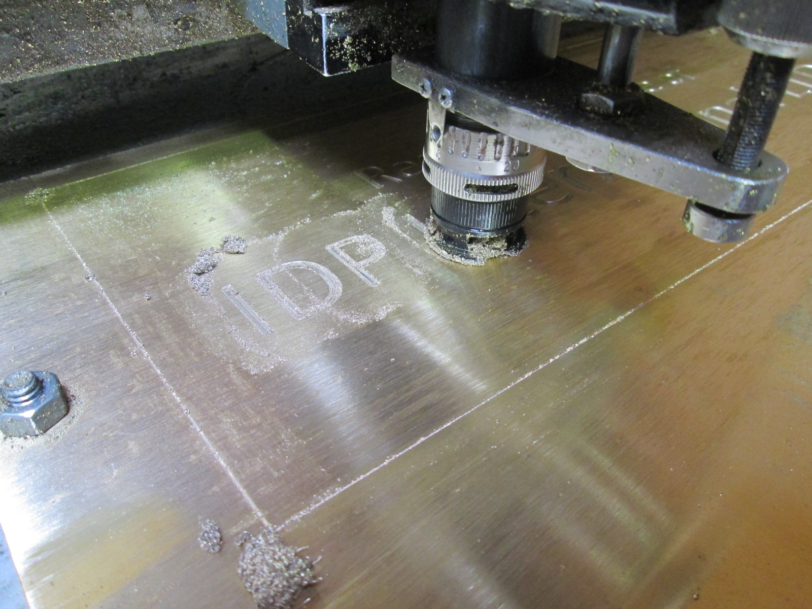 We engrave into the surface of the brass using our rotary engraving machine and then paint fill the letters/ logo.